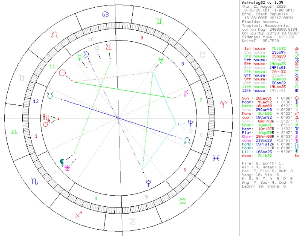 Mars přestoupil z Raka do Lva právě teď, 4. listopadu 2024 kolem šesté hodiny ranní. Jeho nátlaková opozice k Plutu, energie totálního nasazení, jakkoliv už se překlopila přes moment technicky přesného aspektu, nabírá na síle. Pocítí zejména ti, kdo aktuálně zažívají osobní kontakt s tranzitním Plutem (29°46′ Kozoroha). Mocenský boj o kontrolu a dominanci kulminuje. Viz americké volby zítra. Mars setrvá ve Lvu do polovina června 2025. Pak přejde do Panny. Je to nezvykle dlouhá doba. A důvod? Samozřejmě retrogradita. Tu si střihne v termínu 6.12.2024 – 23.2.2025 na hranici Lva a Raka, Raka a Lva v opakované opozici k Plutu. Víme.