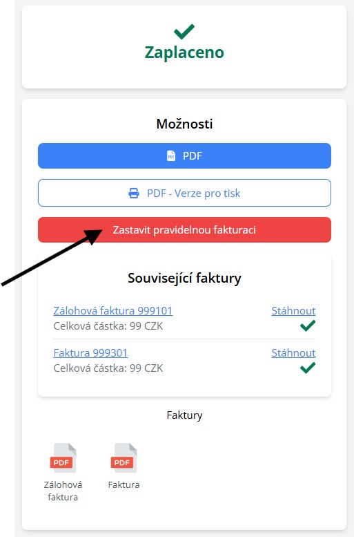 Ve všech e-mailech k objednávce a fakturaci najdete odkaz na PŘEHLEDOVOU STRÁNKU OBJEDNÁVKY. Na ní můžete předplatné na jedno kliknutí zrušit.